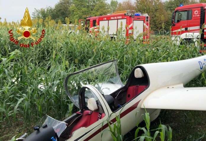 Aliante atterra fuori pista, scattano i soccorsi dei pompieri: illeso il pilota