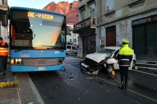 E’ andato a schiantarsi contro un pullman della Svt, provocando danni considerevoli e bloccando il traffico nell’ora di punta. E’ accaduto stamattina ad Arsiero alle 7.23 al guidatore di una Fiat Punto.
