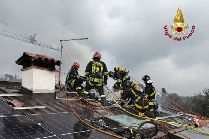 Per spegnere le fiamme, le squadre hanno dovuto rimuovere i pannelli fotovoltaici presenti sulla casa in ristrutturazione e successivamente tagliare il tetto ventilato con una speciale motosega. L’incendio ha causato ingenti danni alla copertura dell’abitazione.