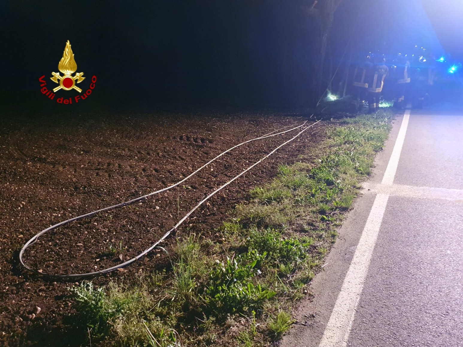 Auto fuori strada abbatte due pali del telefono. Guidatore “graziato”