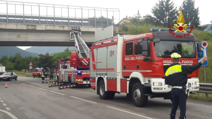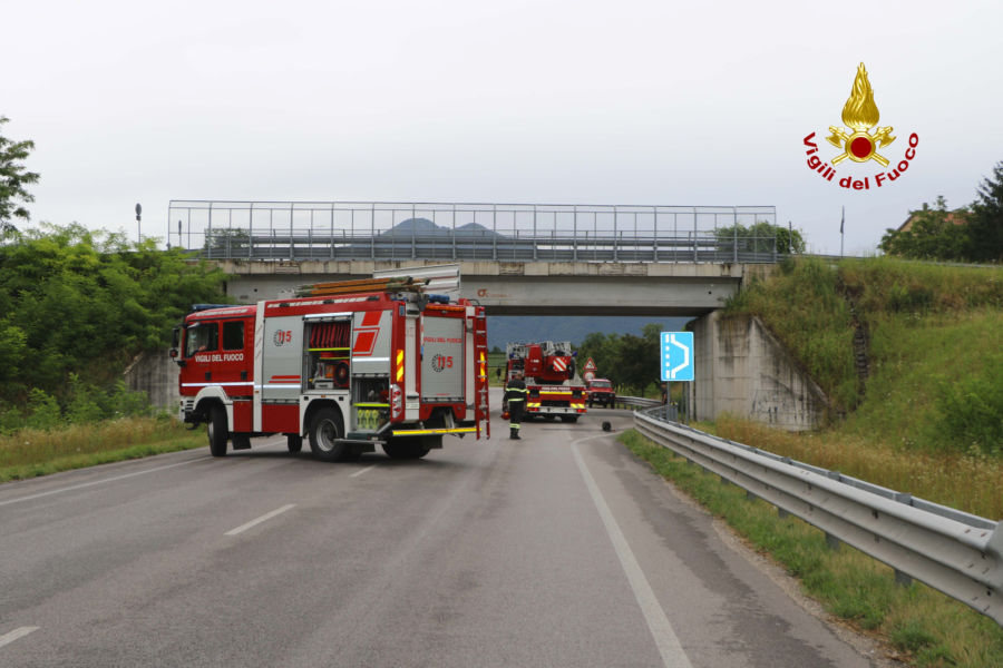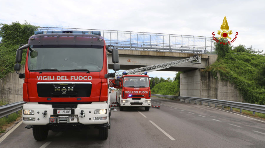 L’allarme è scattato intorno alle 14 di oggi, quando un’automobilista particolarmente accorta ha intravisto un pezzo di calcinaccio staccarsi e cadere sull’asfalto. La donna ha immediatamente composto il numero unico di emergenza, avviando così la rete di soccorso che ha incaricato i vigili del fuoco dell’intervento urgente in via dell’Autostrada, in territorio di Zanè. Una volta sul posto, la squadra del 115, con l’aiuto delle pattuglie di polizia locale accorse per bloccare il transito ai veicoli, ha utilizzato l’autoscala per eliminare i pezzi di intonaco pericolanti e “pulire” le pareti esterne del cavalcavia.