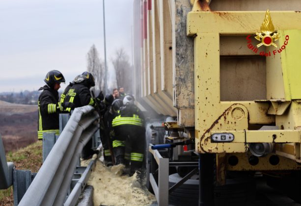 Lo sfarinato era fuoriuscito dallo squarcio della lamiera della botte caricata sul rimorchio, un “taglio” dovuto alle alte temperature raggiunte nella prima fase delle fiamme. Problema limitato un estintore utilizzato da un equipaggio delle polizia stradale, giunto per primo sul luogo dell’emergenza in territorio di Villaverla, e poi raggiunto dalla squadra di supporto tecnico della società di gestione autostradale.