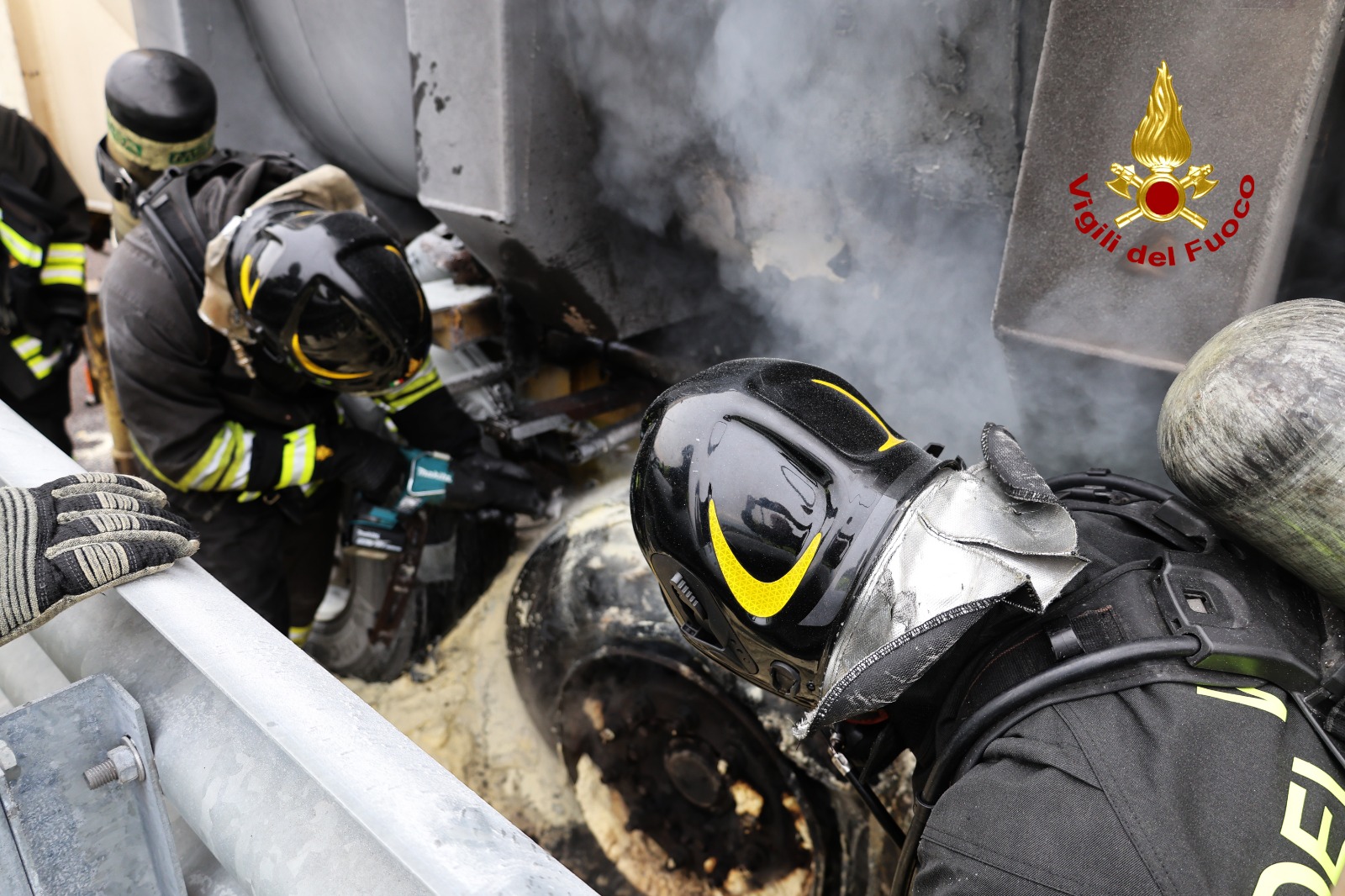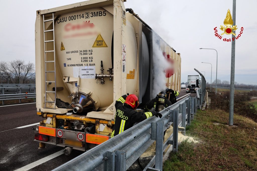 La causa del problema è stata individuata subito nel blocco delle ganasce che ha provocato il surriscaldamento di uno pneumatico, avvolto poi dal fuoco. I pompieri arrivati in pochi minuti dalla centrale di Vicenza con un’autopompa, un’autobotte e in tutto con 7 operatori disponibili, hanno spento del tutto e raffreddato lo pneumatico sui cui era intanto caduta della semola, in quantità per fortuna non ingente, fattore ulteriore di pericolo che rischiava da un minuto all’altro di provocare un incendio generalizzato.