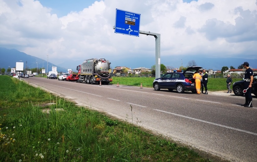 Sul posto sono intervenute due pattuglie della polizia locale Nevi per i rilievi del caso e la regolazione del traffico, che ha avuto pesanti ripercussioni.