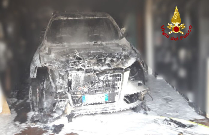 L’Audi ferma nel garage di casa prende fuoco. I pompieri evitano danni all’intera abitazione