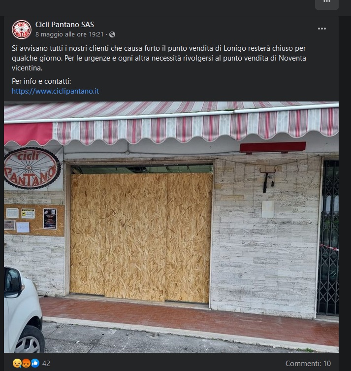 Nelle ore successive è emerso infatti quanto già si sospettava, ovvero che le nove biciclette da corsa (di marca Bottecchia, Lapierre, Cipollini e Pinarello), già caricate sul furgone del serbo, erano state trafugate qualche ora prima, durante la notte, nel corso di una “spaccata” ai danni del negozio di Cicli Pantano di Lonigo, mentre le bici elettriche (di marca Focus e Vent) rinvenute a casa del 43enne sono risultate rubate in negozi specializzati della provincia di Trento, Verona e Mantova: sono in corso le ricerche dei proprietari per la loro restituzione.