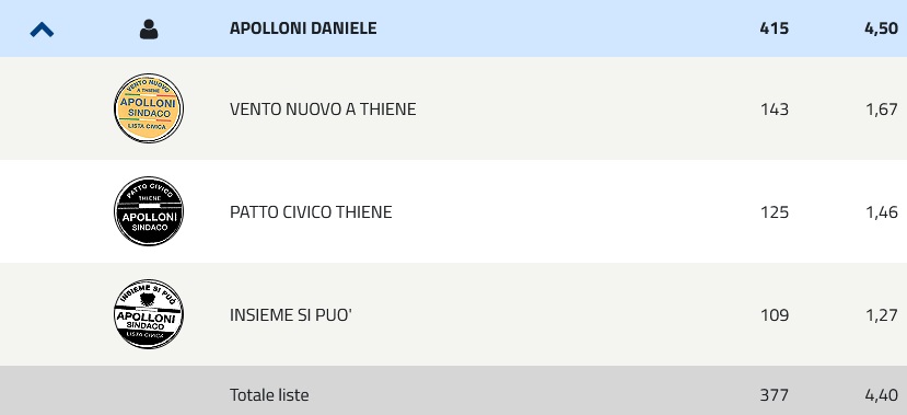 Nulla di fatto per Daniele Apolloni, ex onorevole, che si è distinto per una campagna elettorale pesante e a tratti violenta, grazie soprattutto a Valerio Bassotto, capolista di “Vento Nuovo a Thiene-Apolloni Sindaco”, che si è fatto notare per i suoi post trasudanti intolleranza invece che per i contenuti e alla fine ha incassato solo 4 preferenze. Una debacle annunciata, con l’amministratore condominiale che ha raggiunto il 4,5%.