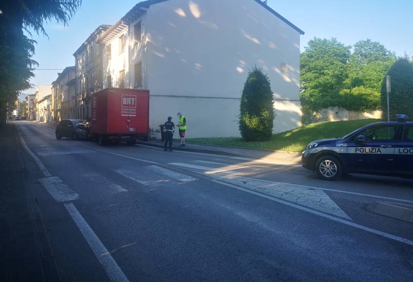 Un frontale fra un’auto e un furgone ha paralizzato intorno alle 18.30 la circolazione in centro a Thiene.