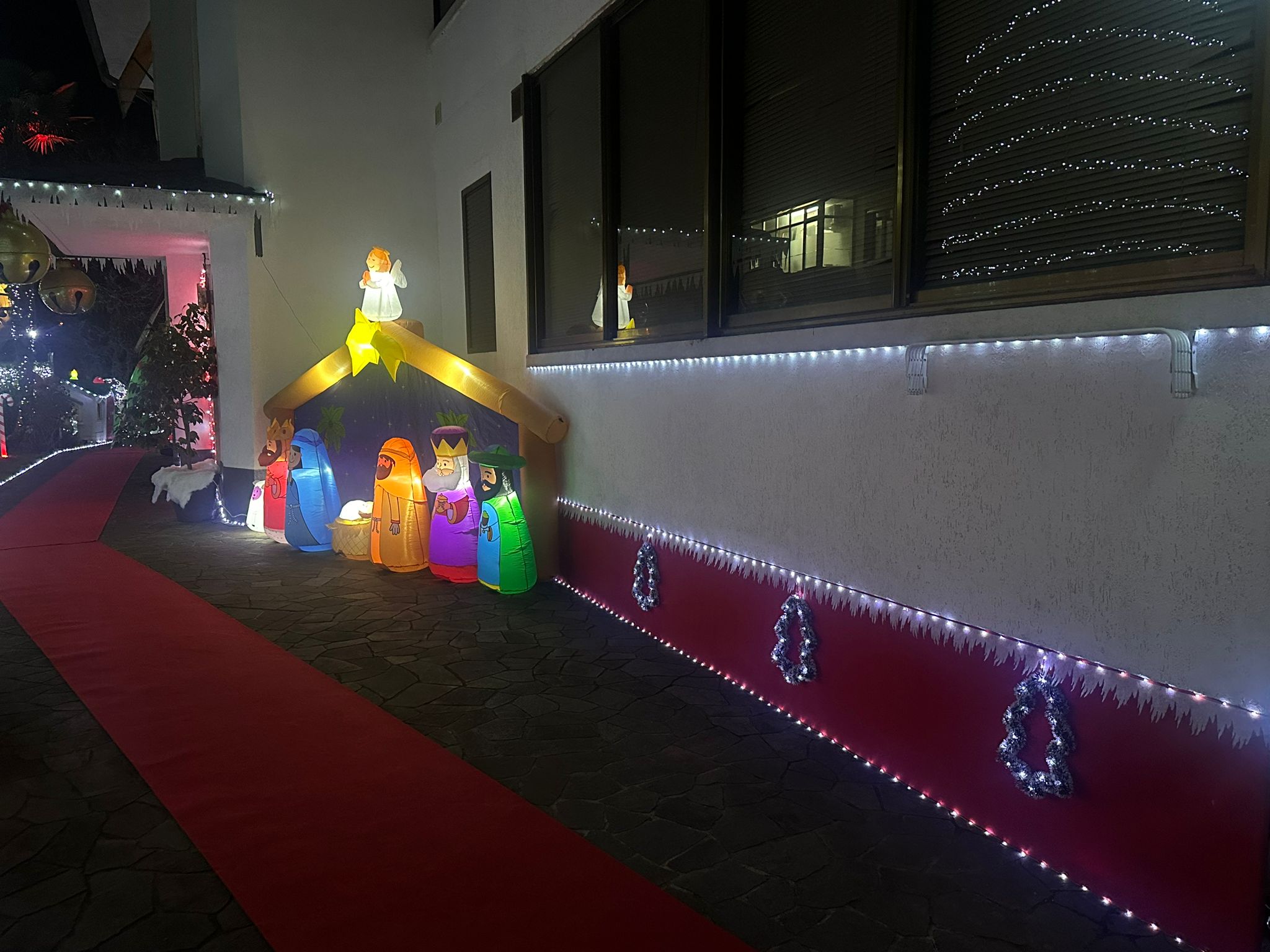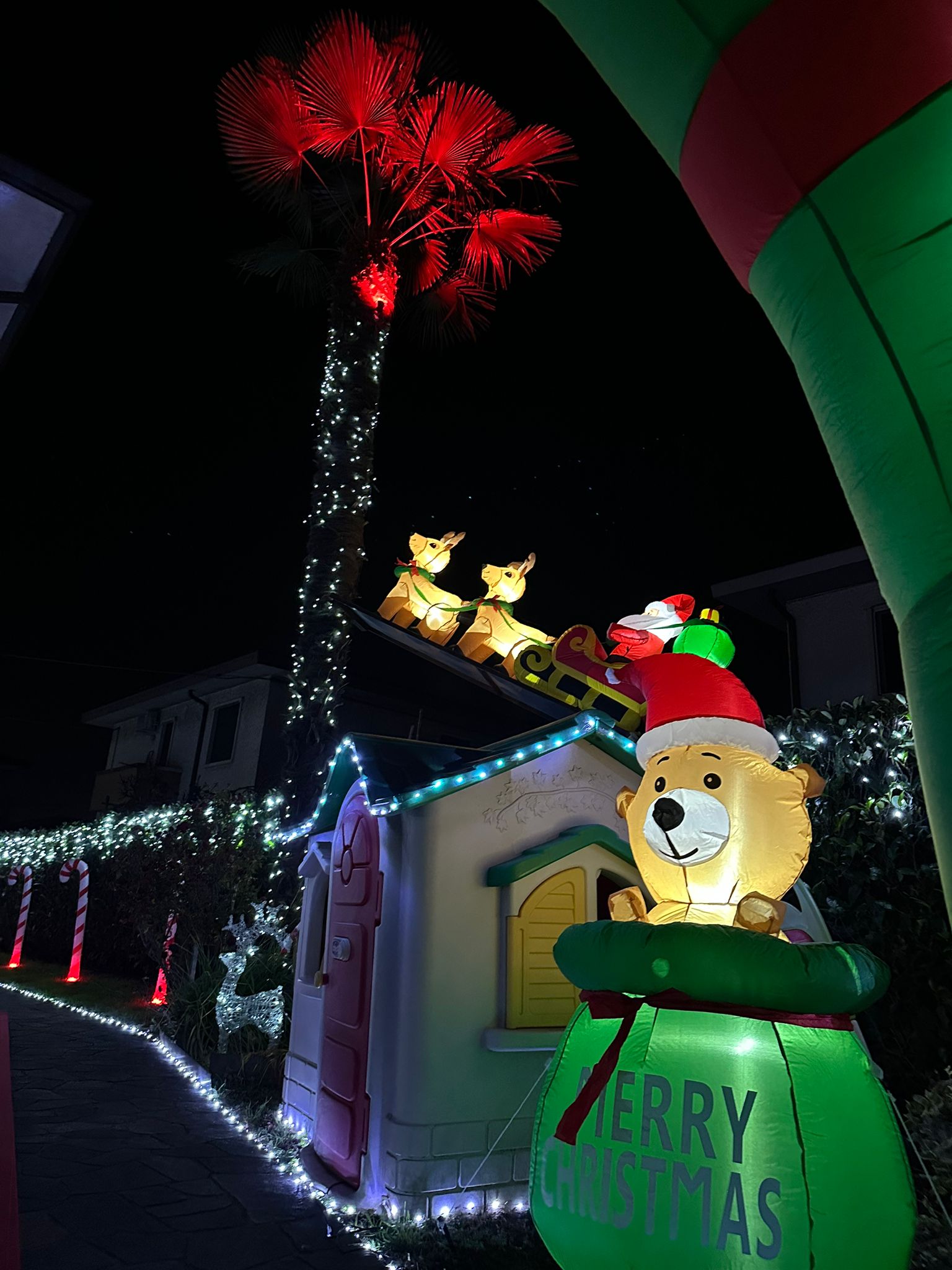 Centinaia i metri di cavi di luci colorate, decine di gonfiabili tra orsetti polari, soldatini in tema “Schiaccianoci” e persino la Natività. E poi un numero impressionante di piccole decorazioni disposte con la passione di chi queste creazioni le ha progettate con tanta cura oltre che col cuore. Alessandro e Daniele Zamperetti, rispettivamente 43 anni e tre figli il primo e 33 anni e due figli il secondo, vivono in un contesto trifamiliare assieme ai genitori in Via Val Cismon e raccontano come sin da piccoli le emozioni di una famiglia radunata attorno all’albero il giorno di Natale e l’euforia incontenibile dell’attesa tra preparativi e addobbi nei giorni precedenti, siano sempre stati parte di loro: “I nostri genitori amavano tanto il Natale e ci coinvolgevano nel trasformare casa in un posto quasi magico – raccontano i fratelli Zamperetti – così quando siamo cresciuti e abbiamo formato anche noi una famiglia, abbiamo portato avanti questa sorta di tradizione integrando di anno in anno installazioni sempre nuove, ma sempre coordinate sia per colore che per senso logico: ogni figura, ogni forma, ogni tonalità ha il suo posto ben definito”.