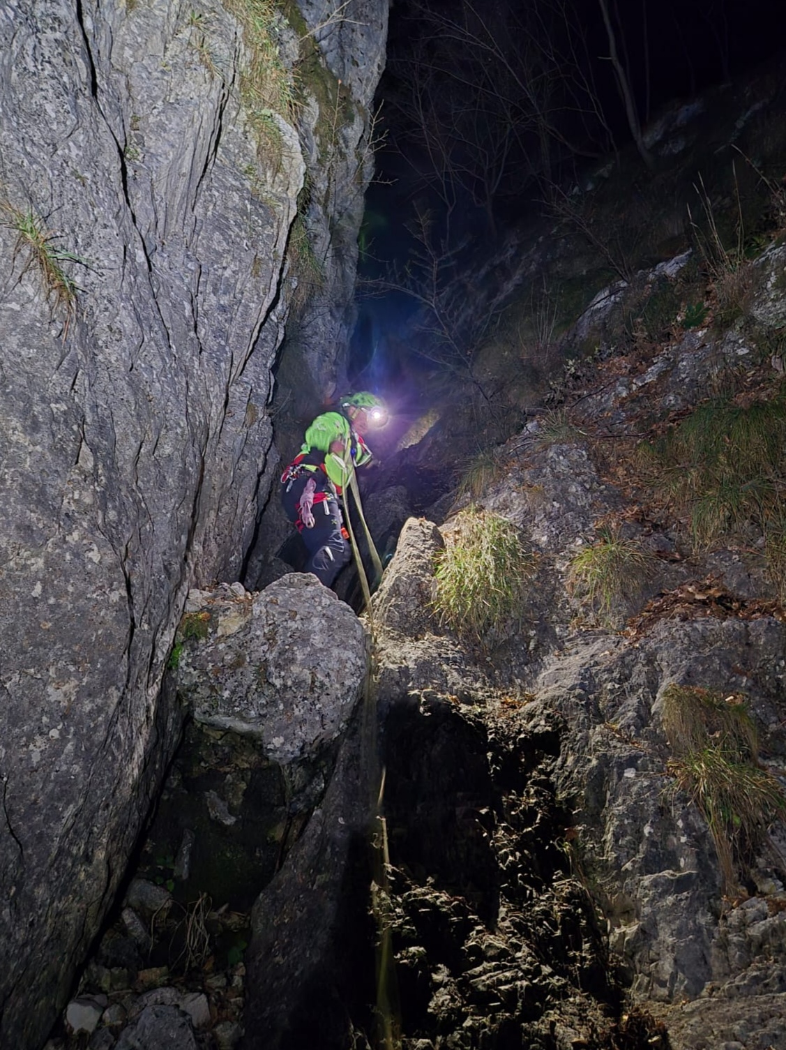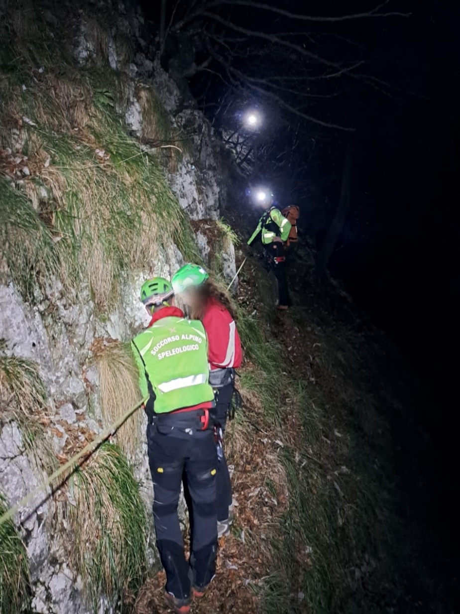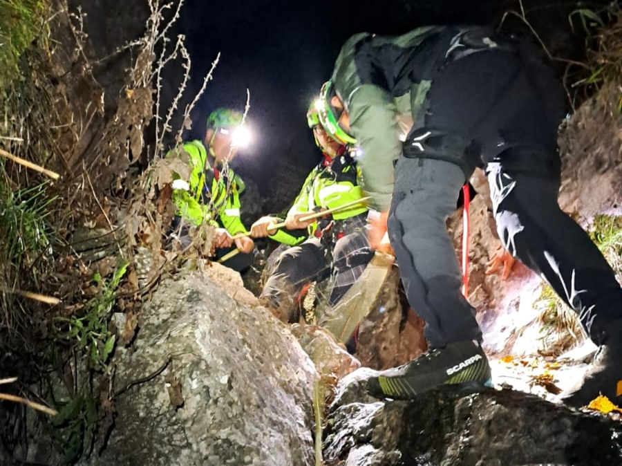 Con il supporto delle altre squadre arrivate di seguito – dieci volontari in tutto – arrampicando e attrezzando il percorso con corde fisse, i soccorritori sono saliti dai due escursionisti più alti. Li hanno dotati di casco e imbrago e li hanno calati fino alla base, per poi rientrare assieme al loro.