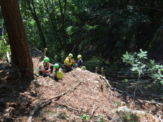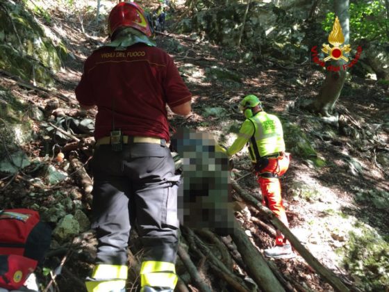 Sul posto anche carabinieri e vigili del fuoco, che hanno collaborato col personale del Soccorso Alpino nel liberare il luogo dalla vegetazione, permettendo così un recupero più agevole della barella da parte dell’elicottero.