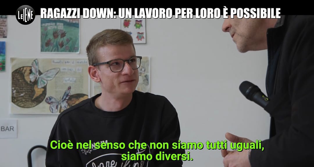 La Iena Giulio Golia, sempre sensibile sui temi dell’inclusione, ha parlato a lungo con Thomas Sbalchiero e con altri ragazzi con la sindrome di Down che stanno facendo un percorso di formazione per essere preparati a trasformare la preparazione ricevuta in un contratto e in un futuro più autonomo. A fare da Cicerone è proprio Thomas che ama il suo lavoro al bar e ama stare tra la gente: “Questo lavoro mi dà soddisfazione e amore, se non avessi il lavoro sarei a casa”, spiega Thomas in telecamera con spiazzante concretezza.