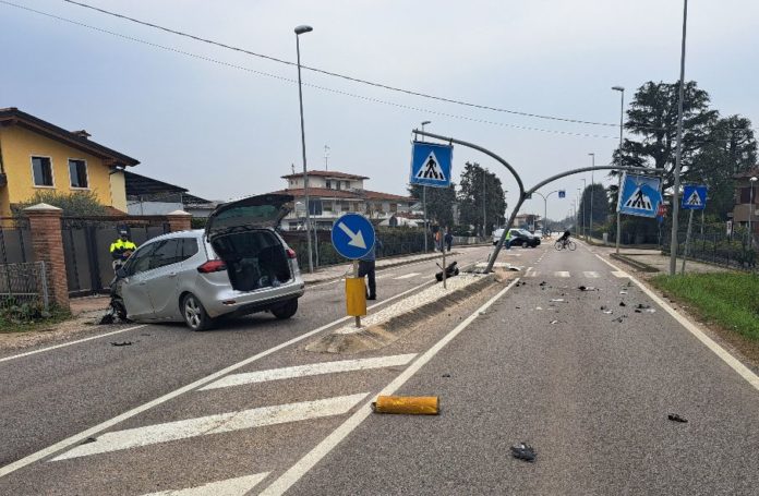 Perde il controllo dell’auto che si schianta e abbatte la segnaletica