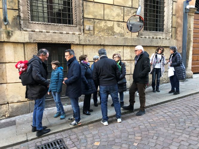 Le persone del Comitato in attesa fuori dalla sede della Provincia di Vicenza in contrà Gazzole