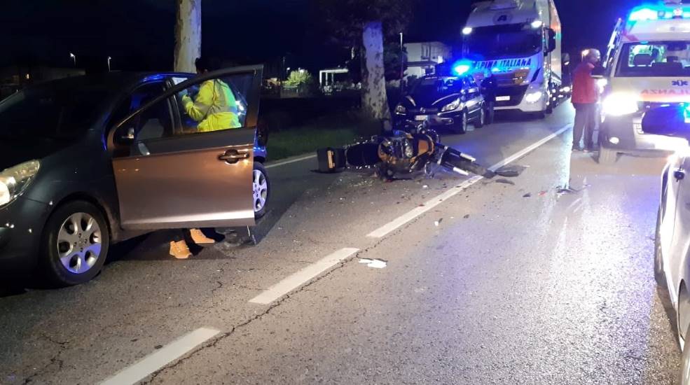 Moto tampona un’auto ferma in colonna: due feriti al Santo di Thiene