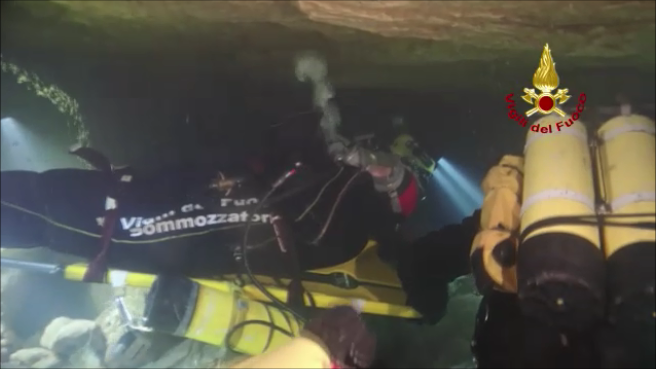 Esercitazione speleo-sub dei vigili del fuoco: tecnica simile a quella usata in Thailandia