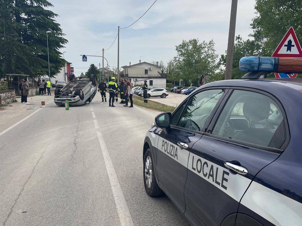 A seguito dell’urto il conducente della Renault Scenic ha perso il controllo del mezzo, che è finito cappottato sulla carreggiata.