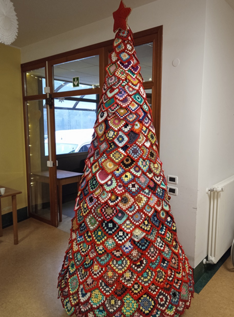 Quasi tre metri di albero con un diametro di poco inferiore al metro e mezzo e tanti riquadri colorati. E’ stata grande l’emozione e lo stupore nell’androne della Casa di Riposo “Casa Nostra” di Valdastico dove gli ospiti, dopo un riposino pomeridiano, sono stati accolti dalla maestosa installazione natalizia tutta cucita a mano per loro.