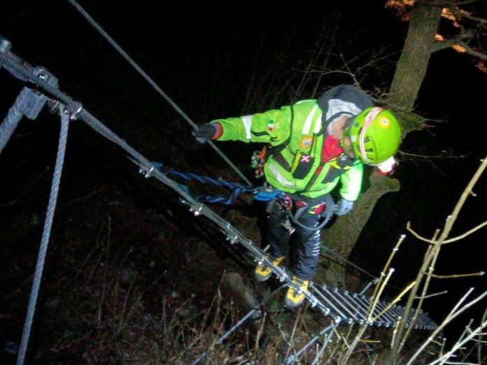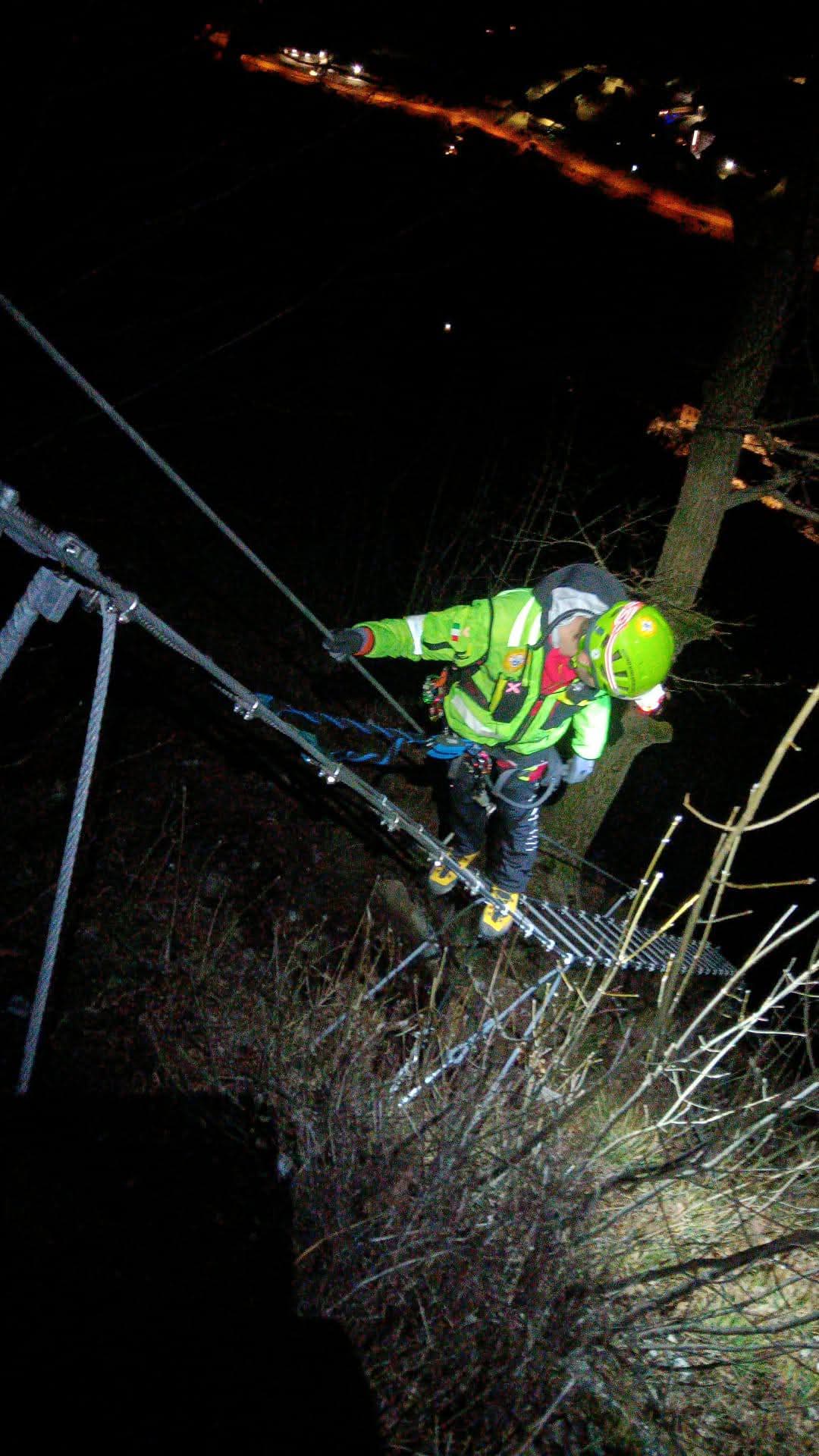 Salvataggio notturno di una escursionista sospesa nel vuoto sulla Ferrata