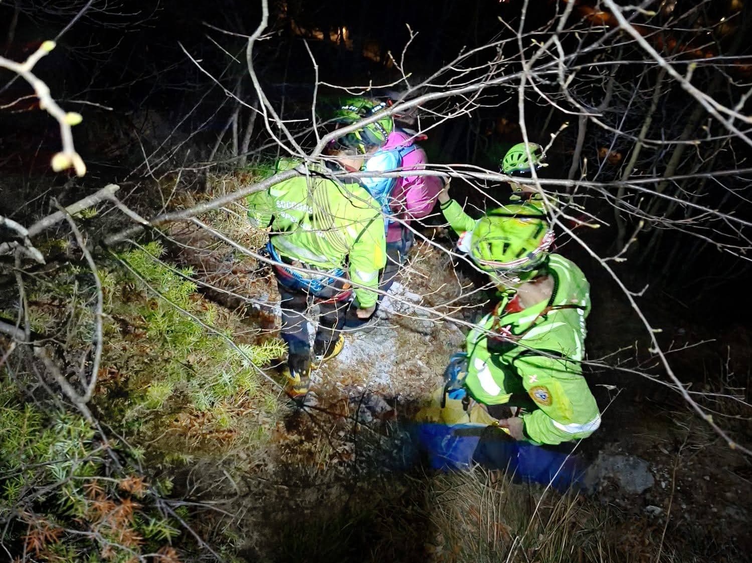 Avvertito l’amico, che si trovava davanti e non poteva aiutarla, verso le 17 è stato chiesto aiuto al 118, che ha attivato il Soccorso alpino di Arsiero. Una prima squadra veloce è salita dal basso, seguita da una seconda con l’attrezzatura. Poiché non si conosceva esattamente la situazione ed era ormai calato il buio, è stato fondamentale l’utilizzo di un drone, che ha illuminato la parete per tutta la durata delle operazioni, a partire dall’individuazione dell’escursionista.