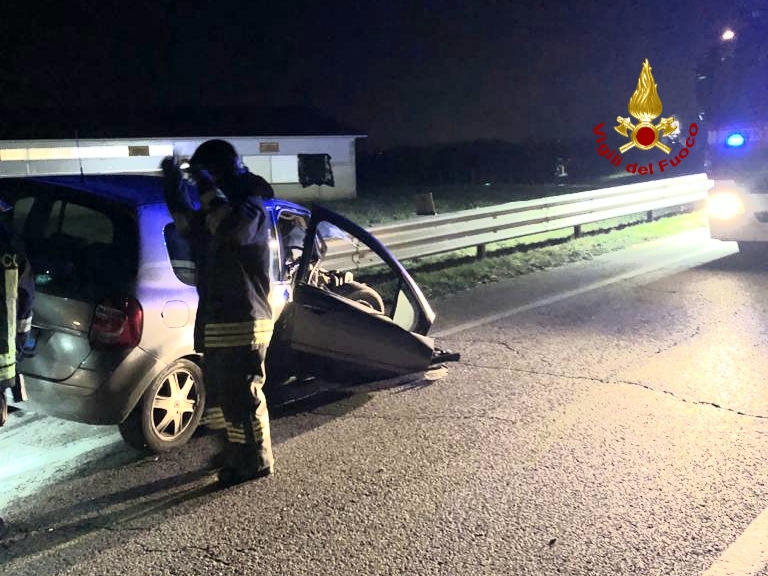 Violentissimo l’impatto sulle barriere stradali della bretella autostradale Thiene-Santorso, stanotte intorno alle 2.30, da parte di un’auto con a bordo la sola conducente al volante, rimasta ferita in maniera lieve. Praticamente, miracolata, così come commentato da alcuni degli operatori intervenuti per rimuovere i rottami della vettura. La parte anteriore del veicolo è finita disintegrata nell’urto, mentre la donna, una 47enne di origini straniere ma che risiede da tempo a Torrebelvicino, riusciva a fuoriuscire in autonomia dall’abitacolo e chiedere aiuto.
