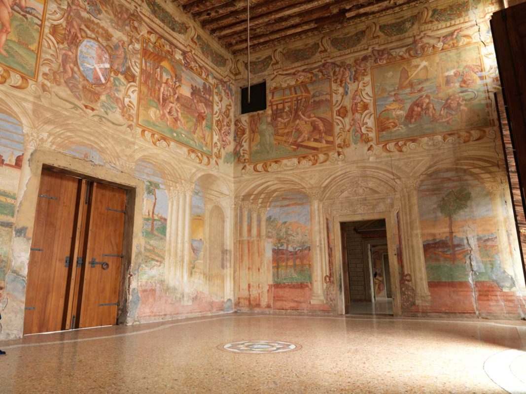 “All’esterno, l’architettura si presenta semplice, elegante e misurato. Ma una volta entrati, si genera un’autentica meraviglia quando si viene avvolti dalla decorazione del Salone centrale. Gli affreschi ricchi e sfarzosi sono fortunatamente ben conservati, e risplendono con storie bibliche, paesaggi bucolici, personaggi in abiti antichi, animali e piante che animano le pareti. Tutte le stanze del piano nobile della villa – dai nomi evocativi come la Sala delle Fontane, la Sala della Musica, la Sala delle Divinità Olimpiche e la Sala dei Cavalieri – sono affrescate e di grande impatto. Ognuna è sontuosa e si presenta al visitatore con una propria storia da raccontare, spesso strettamente legata ai proprietari della dimora che, nel corso dei secoli, sono stati davvero molti.