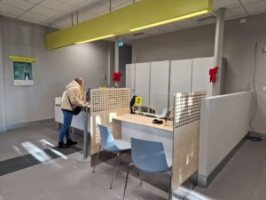 Nell’ufficio postale la sala che accoglie i clienti è stata rinnovata, dotata di nuovi arredi e colori ed una corsia per non vedenti. È stato inoltre realizzato uno sportello ribassato utile per richiedere in tutta comodità i servizi della pubblica amministrazione oltre ai prodotti ed ai tradizionali servizi postali.