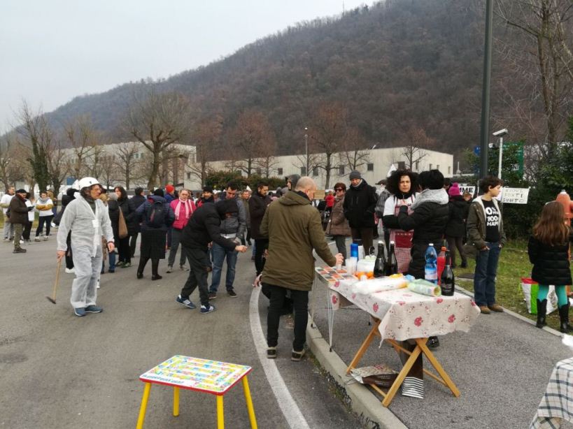 Protesta davanti ai cancelli della Miteni di Trissino oggi pomeriggio da parte dei genitori no-pfas, come risposta alla richiesta di risarcimento dei danni (per quasi 100 milioni di euro) da parte della Miteni stessa nei confronti delle istituzioni.