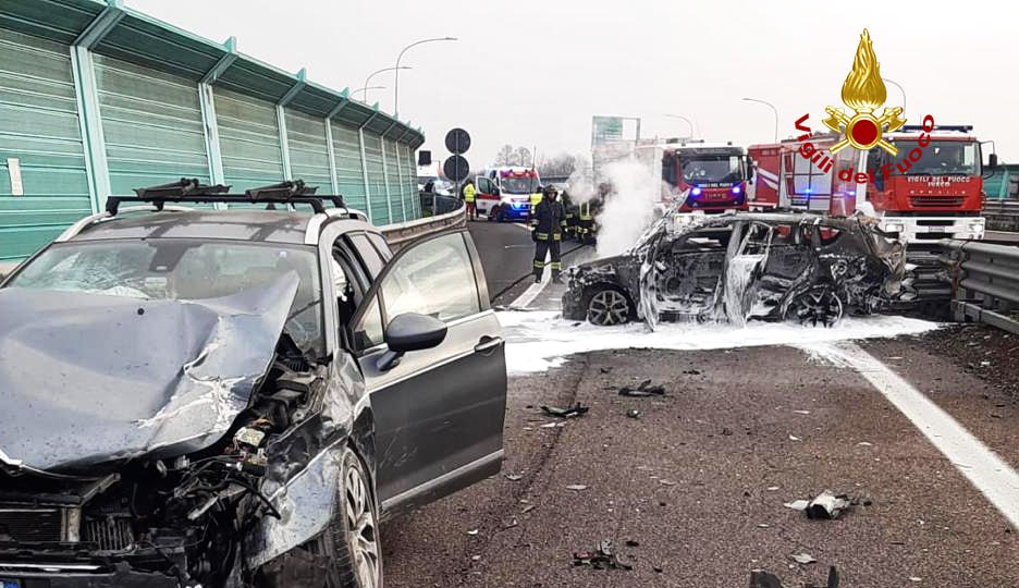 Poco dopo le 8,30 di sabato 7 gennaio i vigili del fuoco sono intervenuti in autostrada A4 nei pressi dello svincolo di Padova Est per un incidente tra due auto con conseguente incendio di uno dei mezzi coinvolti: tre persone sono rimaste ferite e trasferite in ospedale.