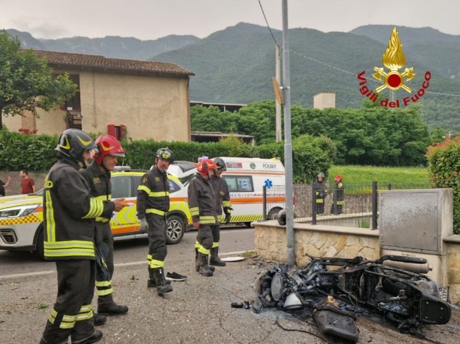 Alle 17:20, di domenica 9 giugno, i vigili del fuoco sono intervenuti in Via Molinetto a Borso del Grappa per uno scooter finito contro un muretto, che ha anche preso fuoco: deceduto il conducente illesa la passeggera.