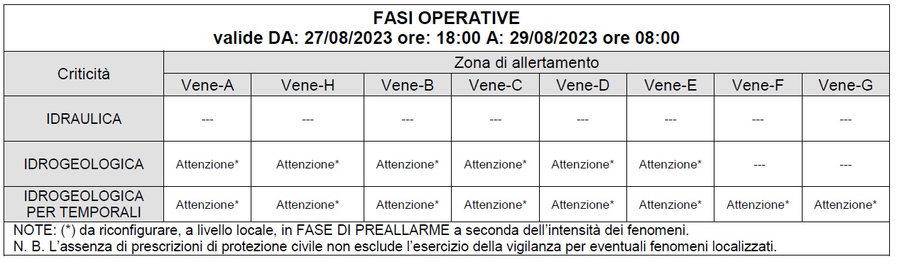 partire dalle ore 18 di domani domenica 27 agosto e valida fino alle ore 8 di martedì 29 agosto prossimo.