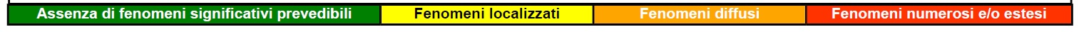 I quantitativi di precipitazione potranno risultare complessivamente consistenti. Per tutta la regione lo scenario sarà caratterizzato da fenomeni intensi e in rapida evoluzione. Sarà possibile l’innesco di frane superficiali e colate rapide sui settori montani, pedemontani, collinari delle zone in allerta VENE-A,H,B,C,E; potranno anche innalzarsi i livelli della rete idrografica secondaria e verificarsi rigurgiti dei sistemi di smaltimento delle acque piovane con allagamenti di locali interrati e/o sottopassi.