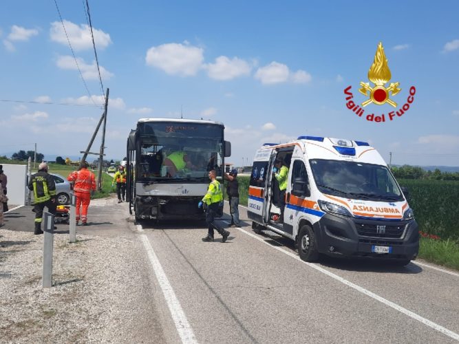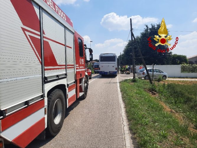 Il torpedone era pieno di studenti che stavano tornando a casa dopo una mattinata di scuola a San Bonifacio e stava transitando lunga la Strada provinciale 500, diretto verso Pressana. All’altezza di un distributore di carburanti in località Baldaria, per cause in corso di accertamento, il pullman si è scontrato, probabilmente per una mancata precedenza, con l’Oper Astra familiare a bordo della quale viaggiavano un uomo di 85 anni e una donna di 81, marito e moglie entrambi di Sarego.