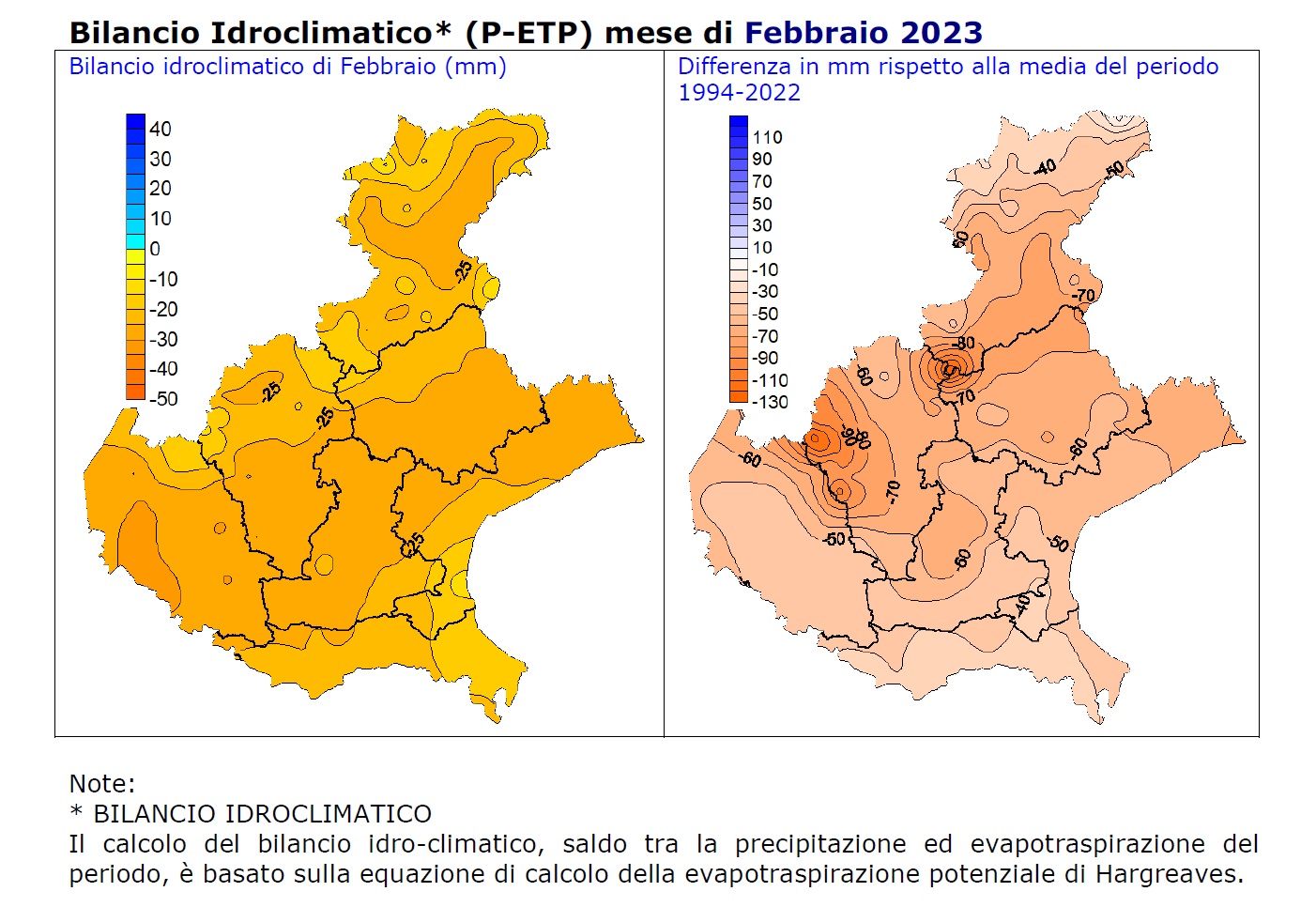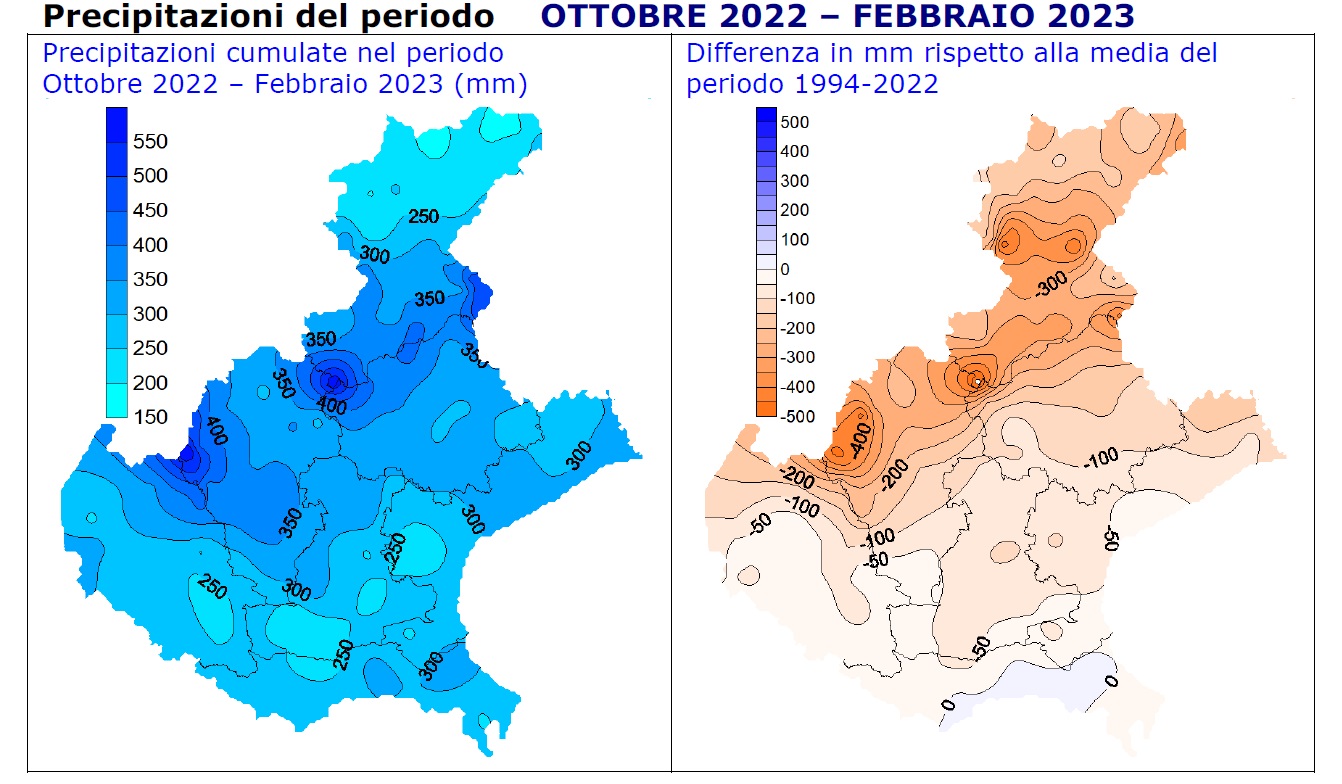 Il documento riferisce che “gli apporti meteorici mensili sul territorio regionale sono pressoché nulli (-96%) e sono stimabili in circa 46 milioni di metri cubi d’acqua”. Per ritrovare una situazione simile bisogna tornare al 1997 con 4 millimetri. In tutti i bacini idrografici della regione di riscontrano condizioni di elevato deficit pluviometrico che variano dal -90% del Po al -98% di Adige, Lemene, Pianura tra Livenza e Piave, Sile e Tagliamento.