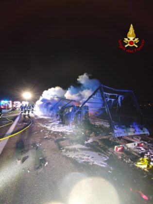 Drammatico incidente stradale nel veronese lungo l’autostrada A22 Modena-Brennero nelle prime ore di oggi giovedì 22 gennaio: due persone sono morte carbonizzate nel tamponamento fra il loro furgone e un autoarticolato, fermo in una piazzola di sosta.
