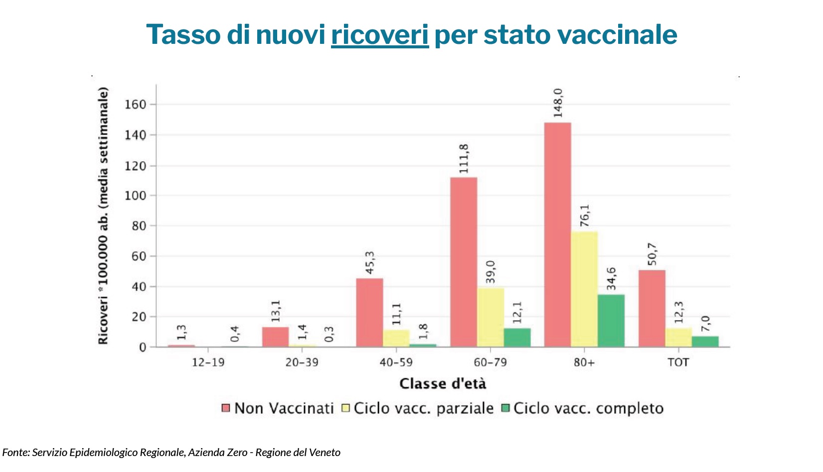 Durante la conferenza stampa il governatore veneto ha anche diffuso due tabelle sull’incidenza dei non vaccinati nei nuovi casi positivi e sui ricoveri, con dati suddivisi per fasce di età.
