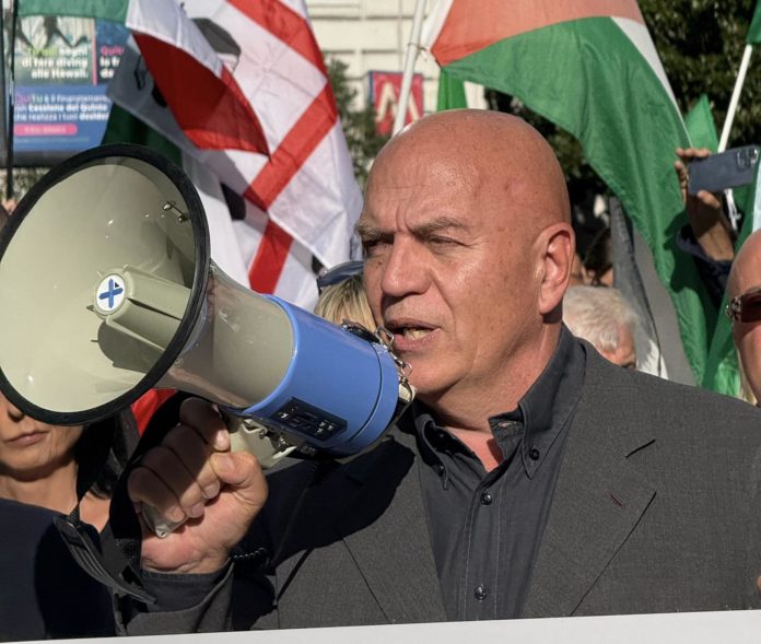 Nel suo intervento, il candidato non ha risparmiato attacchi durissimi alle istituzioni europee e ai leader politici nazionali, accusati di piegarsi ai diktat di Bruxelles e delle banche. “La Von Der Leyen è il kapò tedesco che guida la dittatura della globalizzazione, delle sanzioni e del riarmo imposta dall’UE contro i popoli e territori”, ha tuonato.
