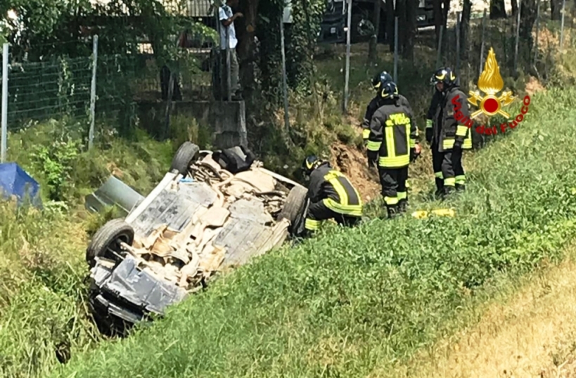 A4, auto esce di strada e cappotta: ferita una famiglia svizzera