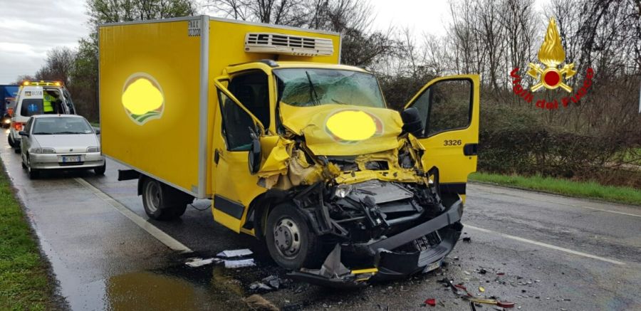 Un furgone per le consegne di latticini tampona un camion. Ferito l’autista