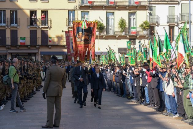 Con toni solenni e partecipazione commossa, nel cuore della città vestito a festa e affollato di Penne Nere già da ieri, si è ufficialmente aperta la 95a Adunata Nazionale Alpini. In una piazza colorata da tutti i vessilli Ana di Italia e del mondo, con la colonna sonora della Fanfara della Brigata Julia, la cerimonia ha visto prima sfilare i gonfaloni, il labaro Ana e il vessillo della Sezione Ana Vicenza “Monte Pasubio”, poi è toccato all’alzabandiera, quindi all’onore ai caduti con la deposizione della corona ai piedi della lapide commemorativa.