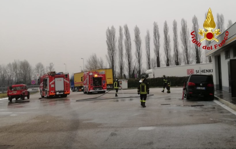 Poco dopo le 14, i vigili del fuoco sono intervenuti in autostrada A31 Valdastico nell’area di servizio Postumia Sud nel territorio di Bolzano Vicentino per l’incendio di un’auto a metano.