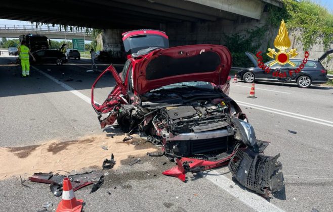 Sul posto i vigili del fuoco giunti dal comando provinciale di Vicenza, che hanno assistito la donna al volante della Peugeot e hanno proceduto alla messa in sicurezza di tutti i mezzi in strada e alla rimozione delle parti di carrozzeria staccatesi per le violenza degli urti tra le auto andate alcune distrutte ed altre fortemente danneggiate. I carabinieri hanno deviato il traffico ed eseguito i rilievi del sinistro.