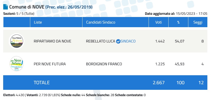 Luca Rebellato “Ripartiamo da Nove” – 54,07% Sindaco eletto