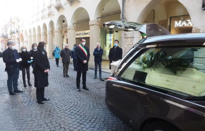 Questa mattina l’ex sindaco di Vicenza Marino Quaresimin, scomparso nei giorni scorsi per una grave malattia complicata dal contagio da Coronavirus, ha ricevuto l’estremo saluto dell’amministrazione comunale. Il corteo funebre, composto dai figli, che hanno accompagnato la salma dall’ospedale San Bortolo al cimitero maggiore, è transitato lungo corso Palladio, sostando davanti a Palazzo Trissino per qualche minuto di raccoglimento accompagnato dal suono delle campane.