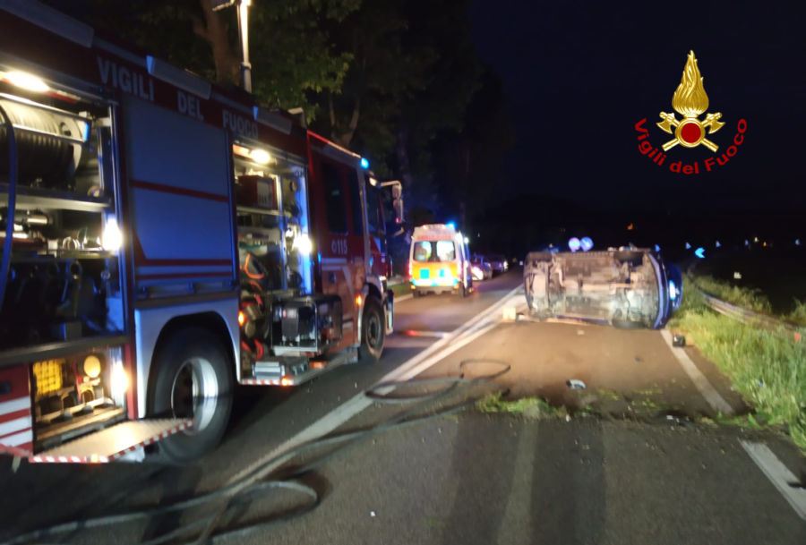 I due pensionati avrebbero avuto la peggio, con il ribaltamento della loro vettura su un fianco e gli sportelli di uscita bloccati a causa. Una situazione di potenziale pericolo, inoltre, in quanto dal serbatoio era già in corso la fuoriuscita di parte del carburante, visibile sull’asfalto.