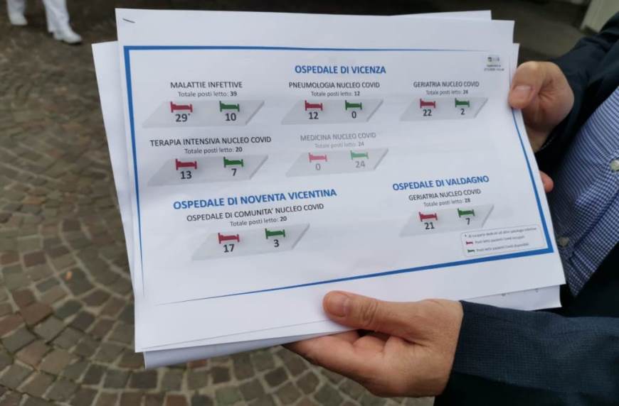All’ospedale San Bortolo di Vicenza i posti letto in area non critica sono ad oggi occupati all’84% (63 su 75), per questo ne sono stati predisposti altri 24 in un’area Covid in medicina. Un po’ più contenuti i numeri dei posti letto occupati in terapia intensiva: ne sono occupati 13, ne rimangono altri 7. Nel dettaglio, come ha illustrato Barra, i 39 posti del reparto malattie infettive ha ancora 10 posti liberi, pneumologia li ha riempiti tutti e 12, l’area covid in geriatria, composta da 24 posti letto, ne ha occupabili ancora solo due. E’ stato quindi predisposta una nuova area in medicina, con 24 posti letto pronti a ricevere nuovi pazienti positivi che necessitano di ricovero.