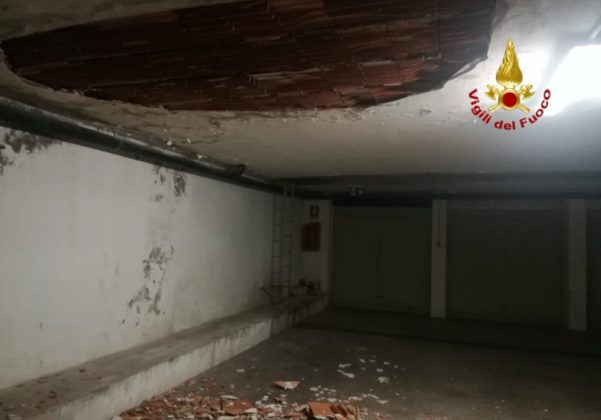 I pompieri, arrivati dalla vicina sede, hanno effettuato sopralluogo constatando il distacco, probabilmente dovuto a delle infiltrazioni d’acqua provenienti dal piano calpestio del cortile del condominio, che sovrasta la rimessa di circa 200 metri quadrati. La squadra ha eliminato tutte le parti a rischio distacco sondando anche tutti gli altri rigonfiamenti visibili.