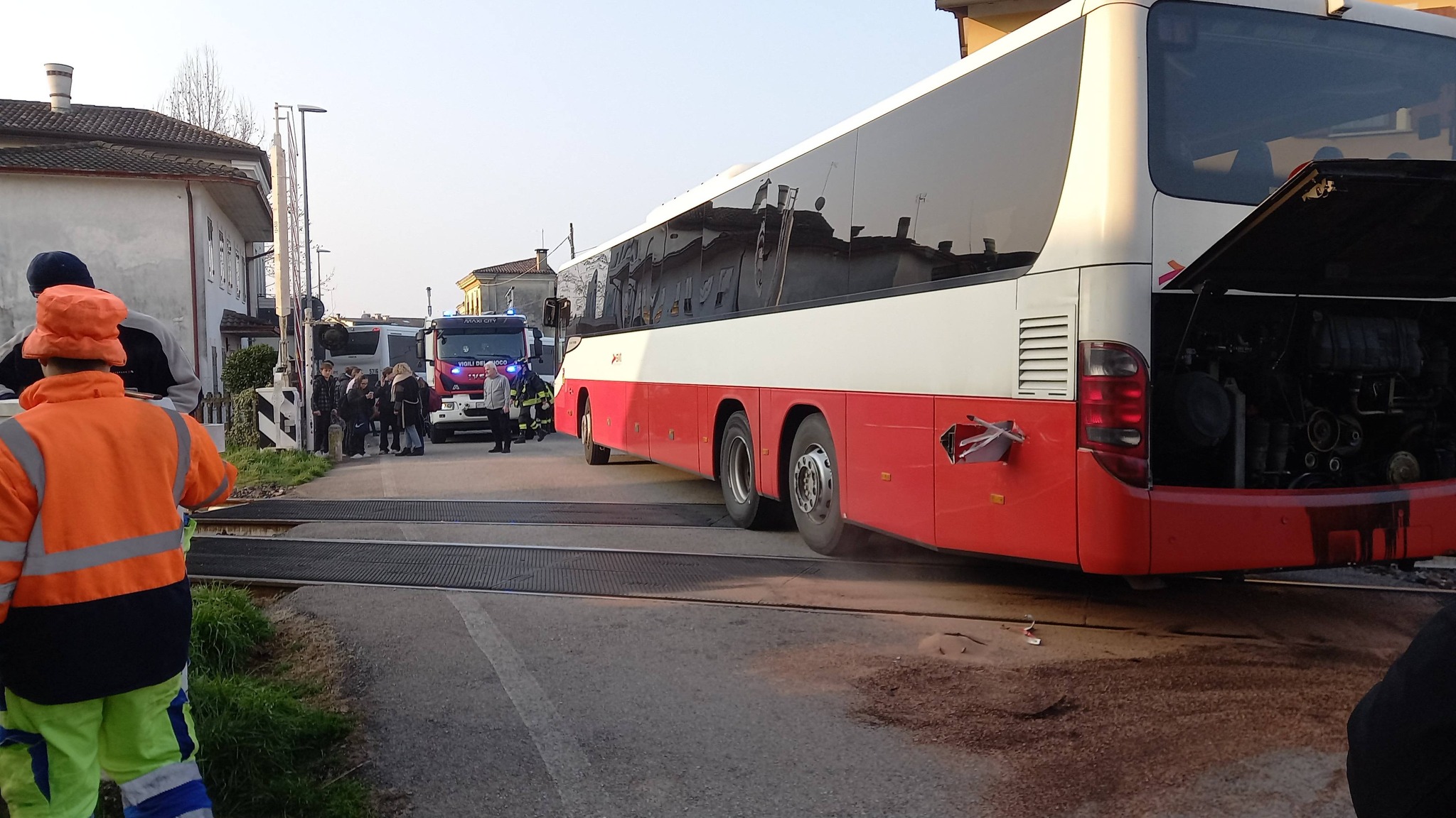 I vigili del fuoco hanno lavorato a lungo per estrarre la sbarra dal bus, rimasta incastrata nell’area del vano motore, sul lato sinistro posteriore del mezzo. I treni della linea Vicenza-Schio hanno subito ritardi fino a 40 minuti. La circolazione ferroviaria è stata sospesa a partire dalle 7,30. Alle 9,30 era ancora sospesa.