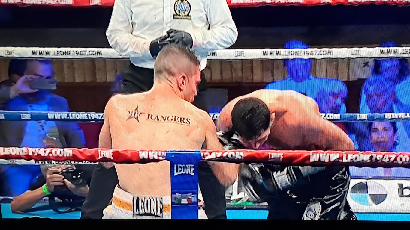 Il verdetto unanime dei giudici alla fine di un incontro molto difficile, condizionato dal gran caldo, ha consegnato nuovamente la cintura di Campione dell’Unione Europea dei pesi Supergallo al campione vicentino che riesce, dunque, nell’impresa di difendere il titolo. Dopo mesi di duro allenamento e grandi sacrifici l’Europa si inchina al dominio del nostro campione.