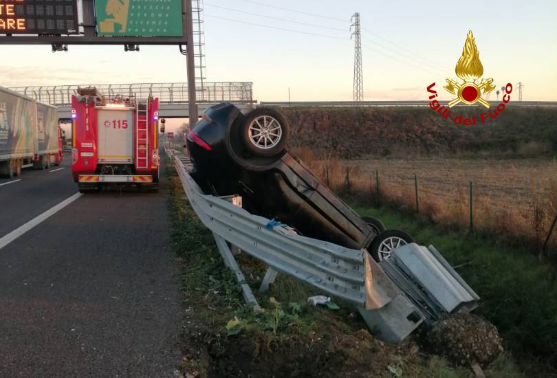 Un automobilista che perde il controllo del suo veicolo e l’auto che finisce poi in posizione verticale e sottosopra contro il guardrail. E’ accaduto ieri nel primo pomeriggio in autostrada A4, tra i caselli di Vicenza Est e Grisignano di Zocco.